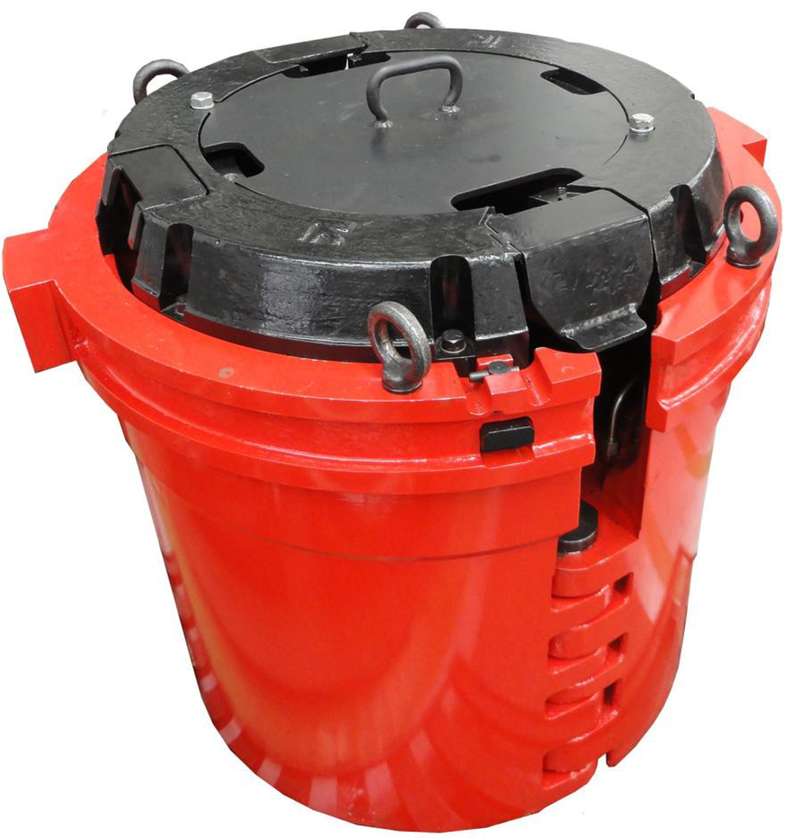The Casing Spiders and/ Elevators are time tested designs made in USA factory of high quality alloy steel. They are 100% load tested and MPI inspected and certified to API 8C specifications. They are all “clam shell” designs so that by removing one hinge pin the unit can be opened to easily install it on or remove it from an in place string.